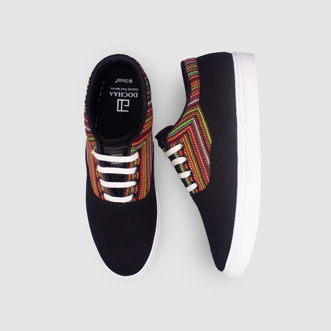 MANG DOCHAA features Shyama fabric, a piece of textile used in the traditional attire of women in the Tamang indigenous community. The word “Mang” is derived from Ta-mang where “Ta” means “horse” and “Mang” means “rider or trader”. Tamang are originally Tibetan horse traders who are popular as inhabitants of Nepali hills. They are native to the hilly region, north of Kathmandu Valley and are believed to have settled several hundred years ago.